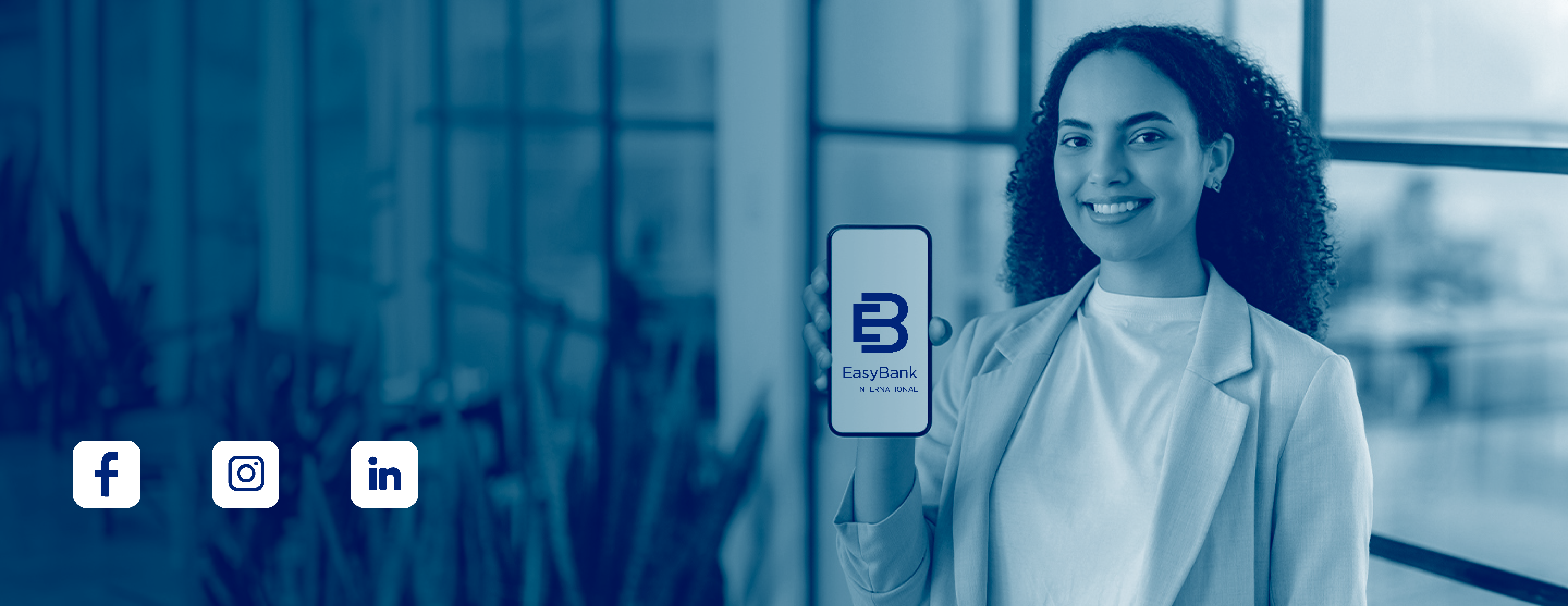 @easybankint en Instagram EasyBank International en Facebook y Linkedln